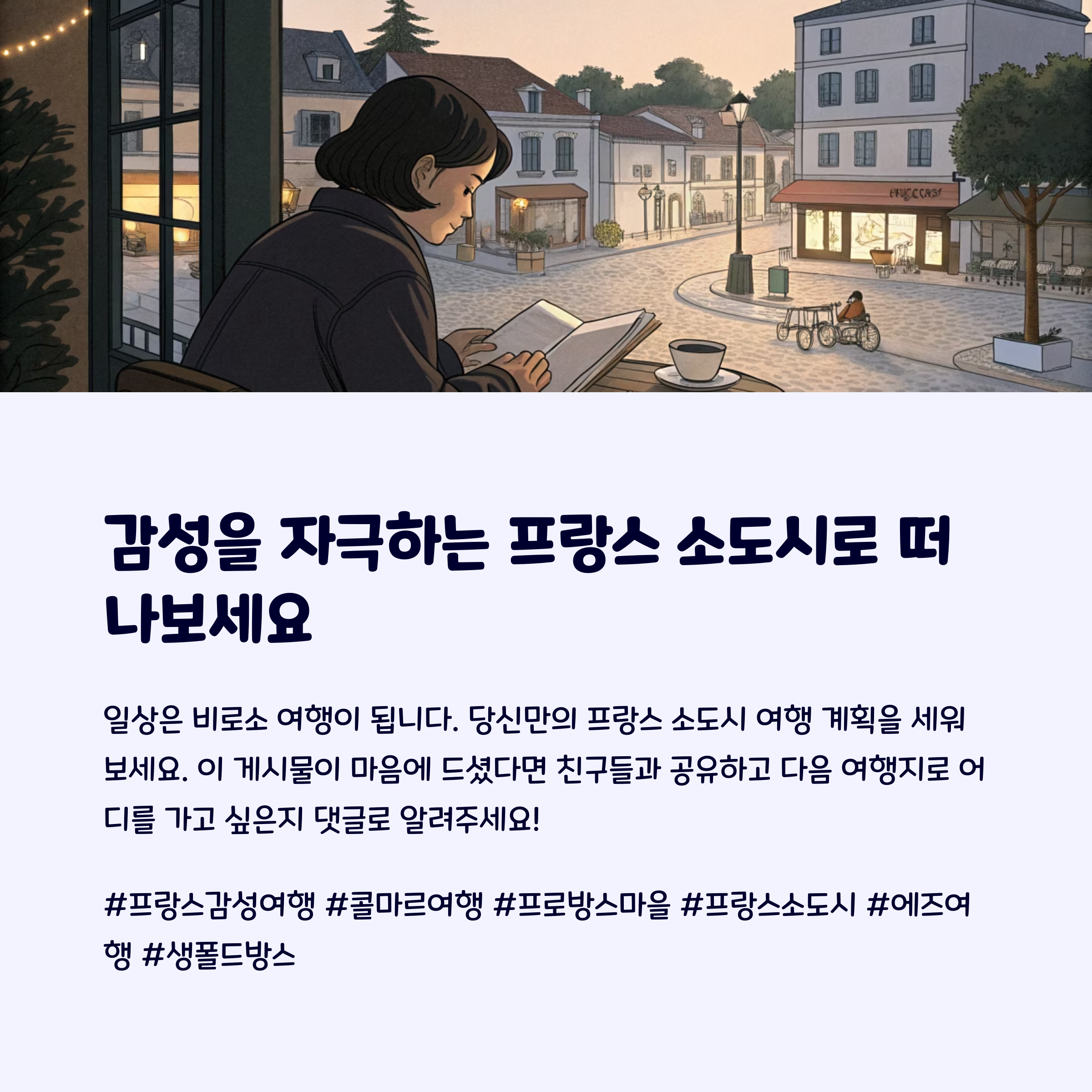 감성을 자극하는 프랑스 소도시에서, 일상은 비로소 여행이 됩니다.